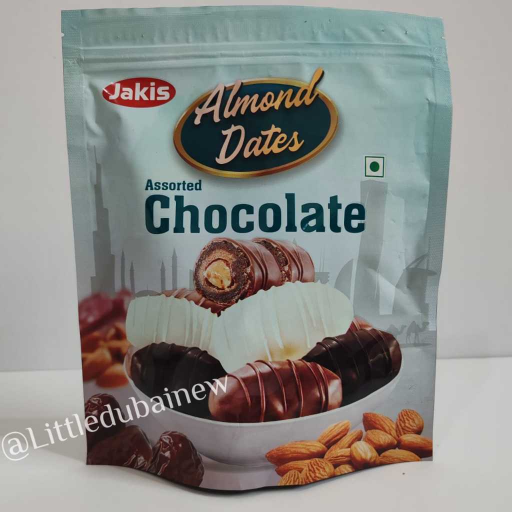 JAKIS chocolate Almond dates, Coklat arab yang memiliki rasa lezat cocok untuk camilan atau oleh-oleh dari arab. Karena coklat ini kami datangkan langsung dari UAE (Dubai)